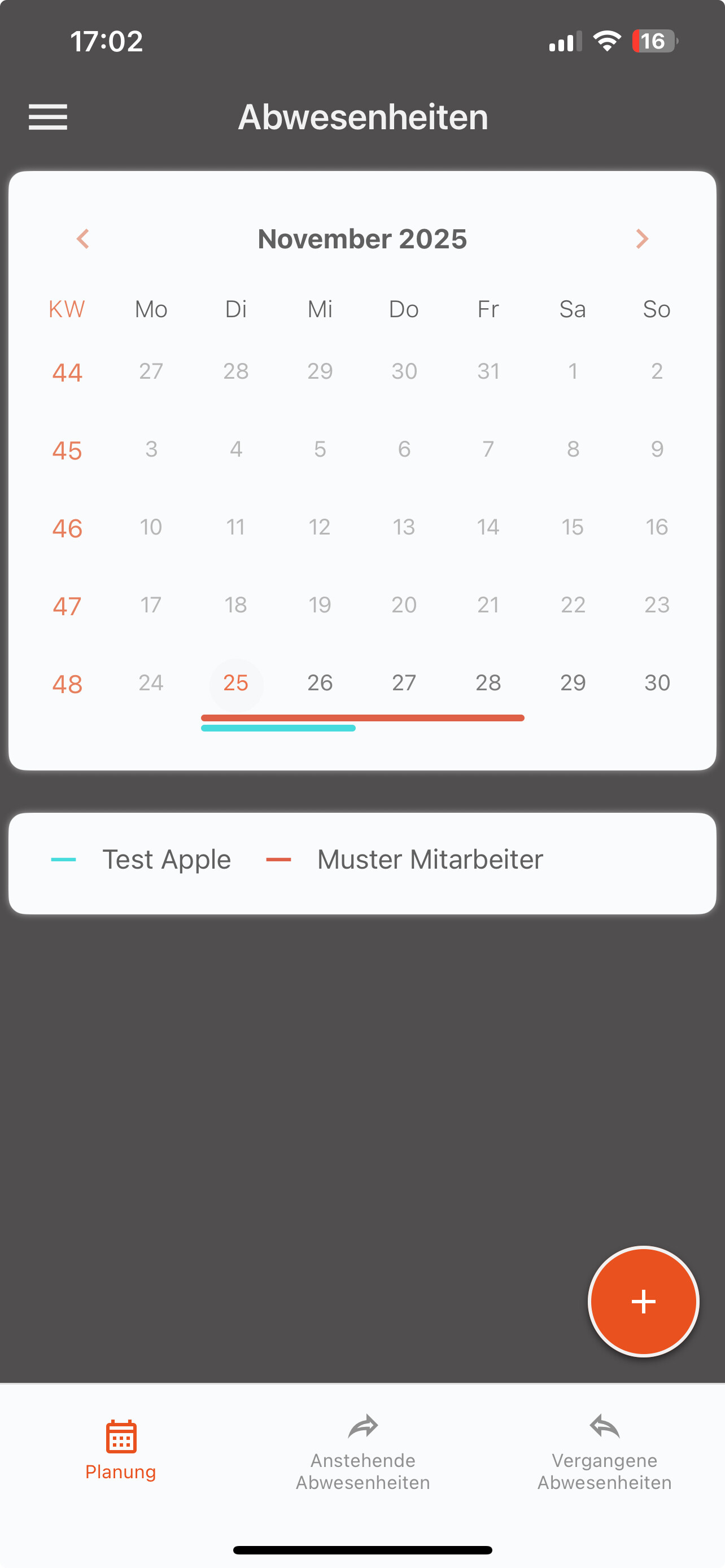 Die Abwesenheitsplanung hat ein neues, übersichtlicheres Design erhalten und arbeitet spürbar schneller. Das sorgt für flüssigeres Arbeiten – besonders bei größeren Datenmengen.