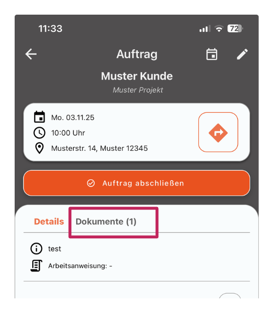 1. Angehängte Auftragsdokumente werden in der App hervorgehoben: Durch dieses Update wird ein Zähler in die Mobile Auftragsansicht eingeführt. Für den Fall, dass ein oder mehrere Dokumente angehängt sind, wird dies durch den Zähler hervorgehoben.